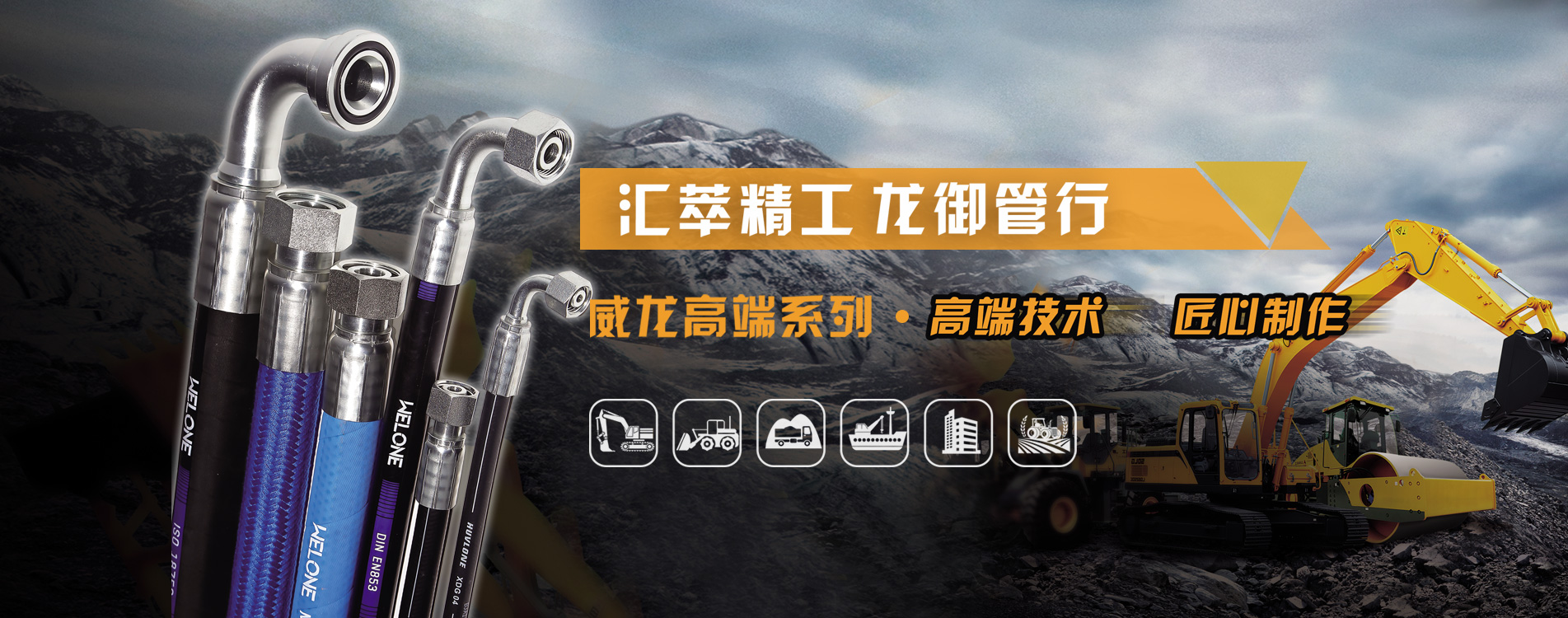 公司目前擁有匯龍?威龍(WELONE)、匯龍?阿爾特(AESTR)等多個系列產品,其中AESTR商標被評為河南省著名商標,目前公司生產的系列產品有鋼絲纏繞液壓軟管、鋼絲編織液壓軟管、纖維增強軟管、軟管總成、軟管接頭、軟管扣壓設備。公司的產品經權威機構認證具有柔軟性強、脈沖性能好、承壓變形小、定長度、使用和維修方便等特點,被廣泛用于工程機械、交通運輸、工業智能、環境控制、航空航天、能源化工等行業。